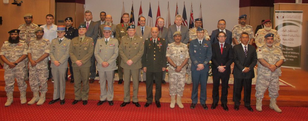 تحت الرعاية السامية لسعادة الدكتور نائب رئيس مجلس الوزراء ووزير الدولة لشؤون الدفاع الدكتور خالد بن محمد العطية تم عقد ملتقى الكليات العسكرية بكلية احمد بن محمد العسكرية وكان ذلك ليومين من الثامن والعشرون الى التاسع والعشرون من الشهر الجاري، وشهد الملتقى حضور عدد من ممثلي كليات دول صديقة لها خبرة طويلة في المجال العسكري والأكاديمي. استهل الحفل بقراءة آيات من الذكر الحكيم لتليه كلمة قائد الكلية اللواء الركن فهد مبارك الخيارين وبإدارة الجلسة من طرف اللواء الركن الدكتور حمد محمد المري قدّمت أوراق من طرف الضيوف لي يتحدث كل واحد عن تجربة كليته ويطرح الانشغالات ويقدم الحلول وفتح باب المناقشة في الأخير ، فكانت الساعات الأولى من اليوم الأول لكلية احمد بن محمد العسكرية والمتمثلة في ورقة القائد وورقة من كلية سان جان والكلية الحربية التركية ثم أعطت الكلمة للحضور وكانت لهم مداخلات قيمة ليستريح الجميع ويستأنفوا في جلسة ثانية بإدارة عقيد ركن عبدالعزيز السليطي حيث من خلالها تم الاستماع الى متحدثين من الجامعة الماليزية للدفاع وأكاديمية الدفاع الاسترالية والأكاديمية العسكرية الفرنسية ثم يختتم اليوم الأول بنقاش فعال.