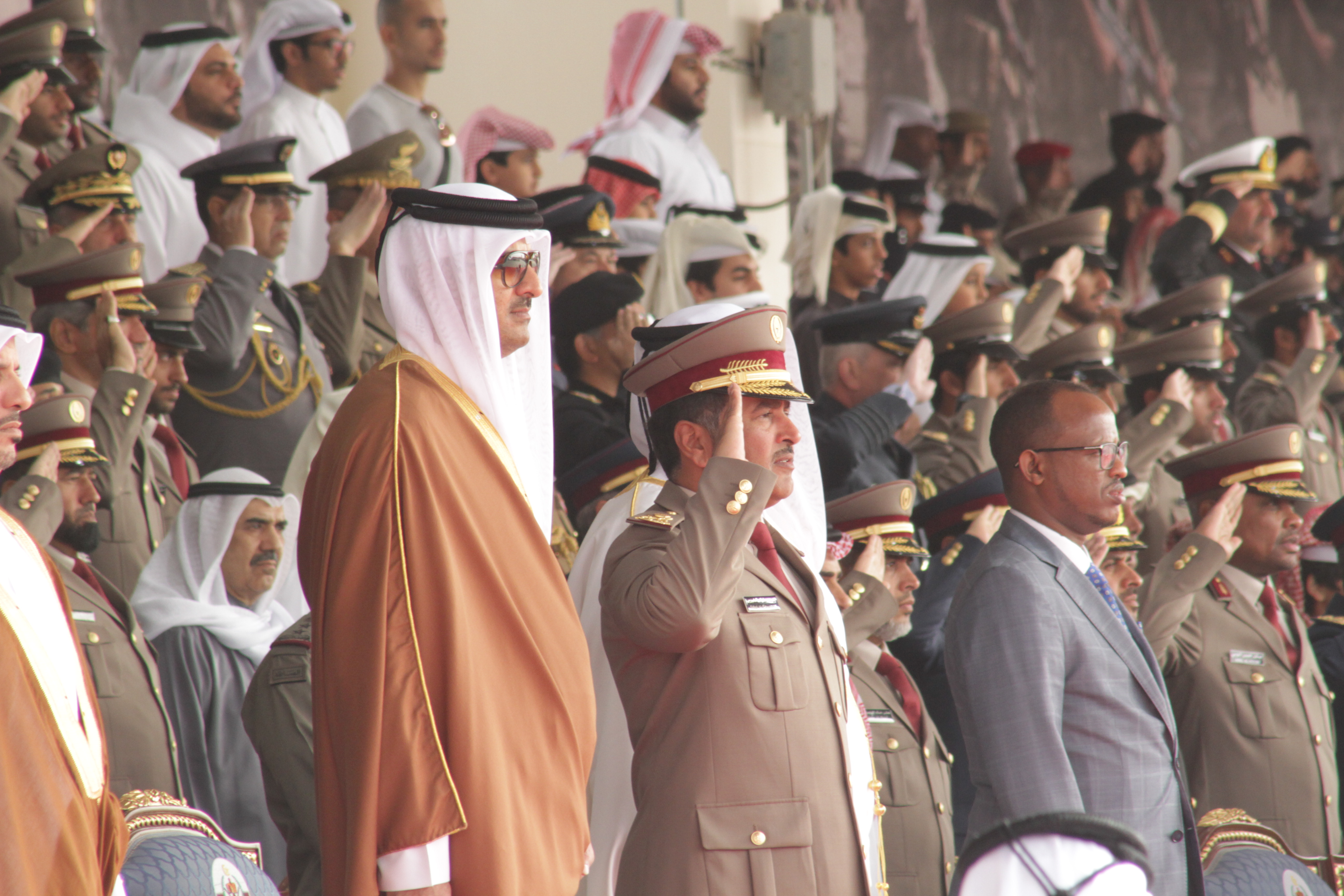 وقد حضر حفل التخريج معالي الشيخ عبد الله بن ناصر بن خليفة آل ثاني رئيس مجلس الوزراء ووزير الداخلية وسعادة الدكتور خالد بن محمد العطية نائب رئيس مجلس الوزراء ووزير الدولة لشؤون الدفاع وعدد من أصحاب السعادة الوزراء والسعادة الشيوخ وكبار ضباط القوات المسلحة ووزارة الداخلية، بالإضافة إلى عدد من قيادات الكليات العسكرية من الدول الشقيقة والصديقة وأولياء أمور الخريجين. استهل الحفل بكلمة ألقاها اللواء الركن فهد بن مبارك عبد الله الخيارين قائد كلية أحمد بن محمد العسكرية، رحب من خلالها بصاحب السمو الشيخ تميم بن حمد آل ثاني أمير البلاد المفدى وراعي الحفل، ثم قاموا المرشحون الضباط بعدة استعراضات عسكرية أمام الضيوف، قبل أن يختتم الحفل بالنشيد الوطني وأداء القسم من الضباط الخريجين.