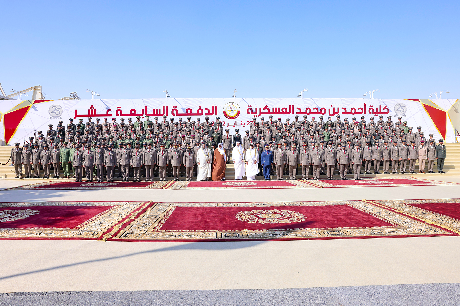 تحت رعاية سعادة نائب رئيس مجلس الوزراء وزير الدولة لشؤون الدفاع الدكتور خالد بن محمد العطية، وحضور سعادة رئيس أركان القوات المسلحة الفريق الركن طيار سالم بن حمد بن محمد بن عقيل النابت، وبحضور ثلة من الضباط والهيئة التدريسية بكلية أحمد بن محمد العسكرية واولياء أمور الخريجين، أقيم حفل توزيع الشهادات لخريجي الدفعة السابعة عشرة...Read More