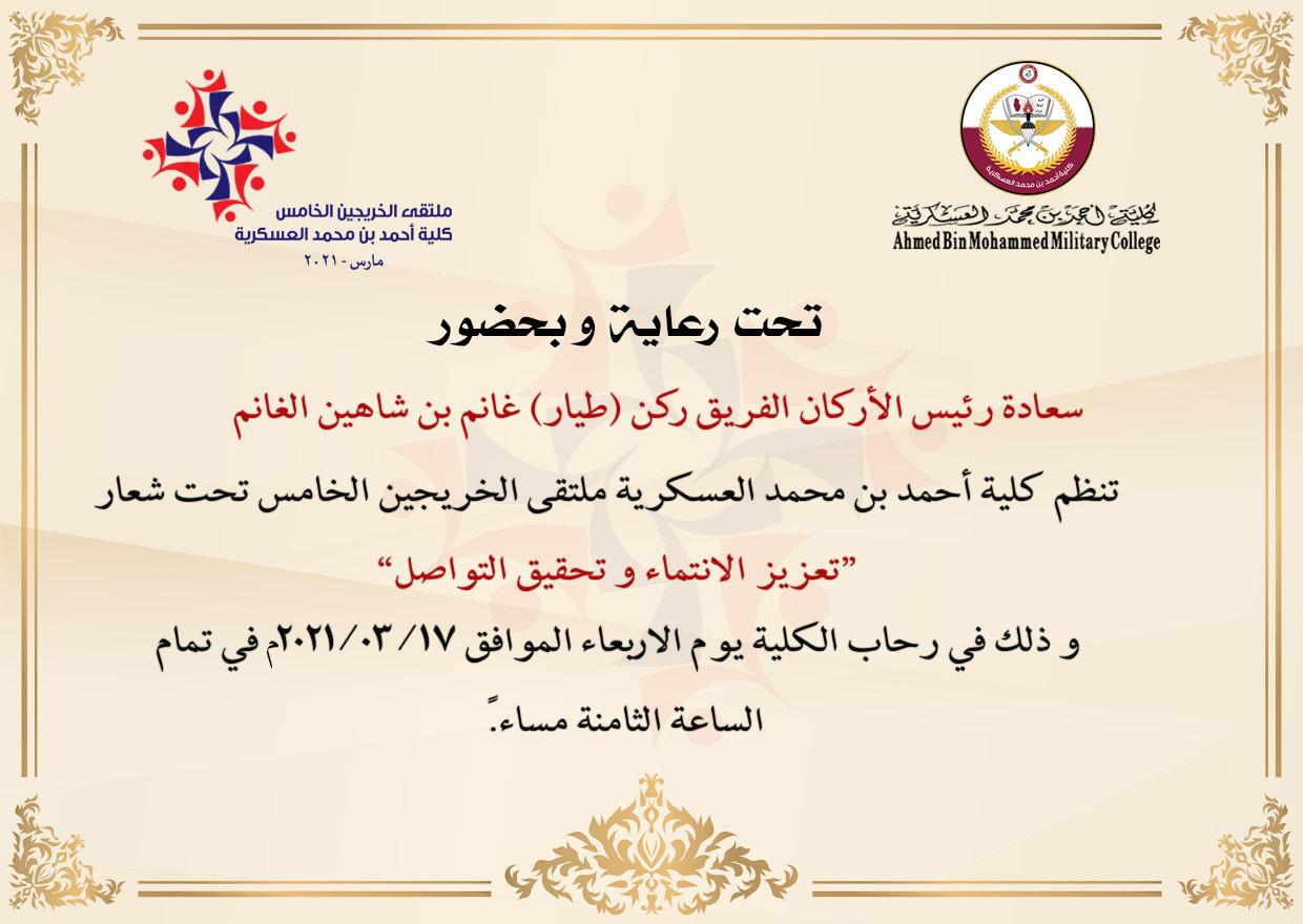 November 9 @ 1:04 PM Ahmed Bin Mohammed Military College is hosting the final exams for various batches (22, 23, and 24) during the period from May 18 to June 2.Read More